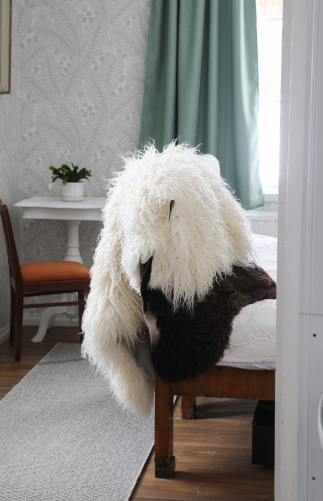 Mökki on tosiaan lammastilan pihalla, mutta siitä huolimatta erittäin rauhallinen ja tuntui yksityiseltä. Mökin tilat ovat kauniisti sisustettuja, sängyt mukavia ja keittiön varustelu on erittäin hyvä. Tilasimme etukäteen hieman lammasta jääkaappiin odottamaan ja siitä tuli grillissä herkullista! Rantasauna oli viihtyisä, mutta näin loppukesästä sinne olisi kaivannut enemmän valoa. Uimapaikka on erittäin lapsiystävällinen, sillä syvää on vasta noin 30 metrin päässä rannasta. Pohja oli myös mukavan pehmeä. Mökissä kannattaa pitää auki vain hyttysverkolla varustettuja ikkunoita, koska maatilalla on luonnollisesti aika paljon kärpäsiä.