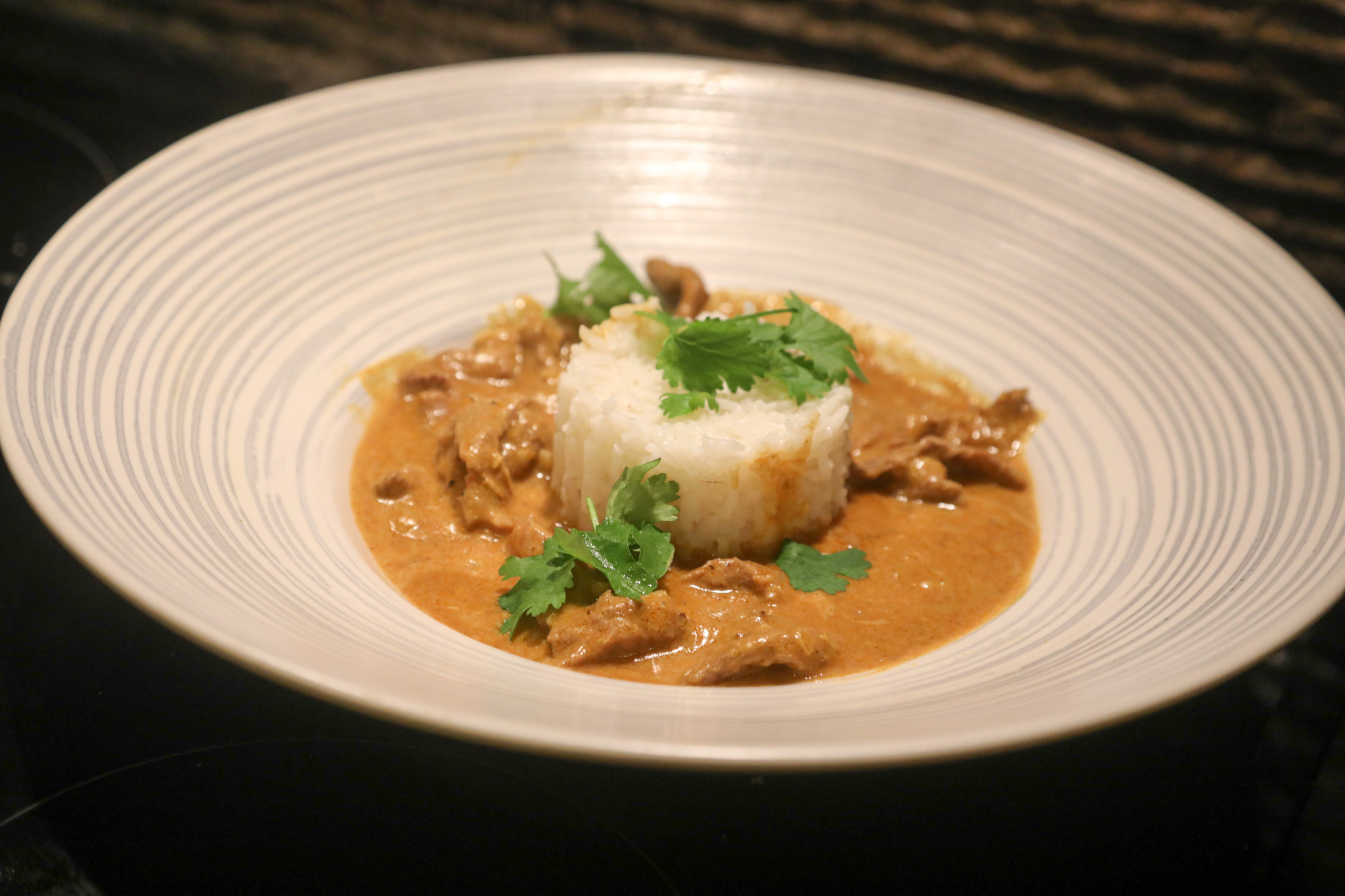 Paista suikaleet pannulla ja mausta kormakastikepurkin kannesta löytyvällä mausteseoksella. Kaada päälle kastike ja currykerma. Sekoittele ja anna hautua hiljalleen n. 10 minuuttia. Mausta halutessasi korianterilla. Tarjoile basmatiriisin kanssa.